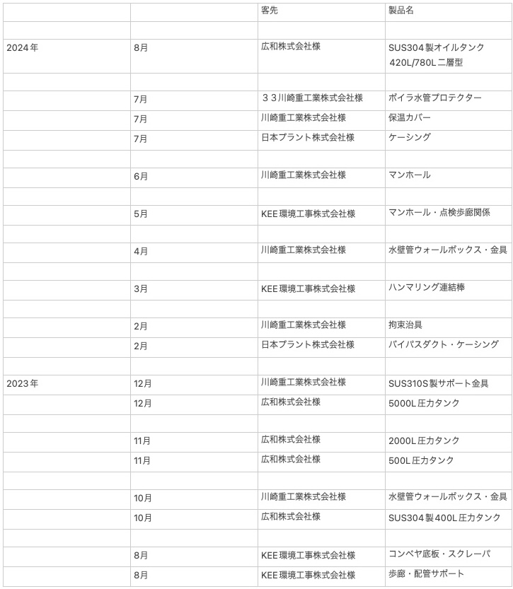 | 事業内容 | 各種製缶品製作/環境プラント、ボイラプラント、化学プラント、水処理プラント、産業機械、その他関連製品 |